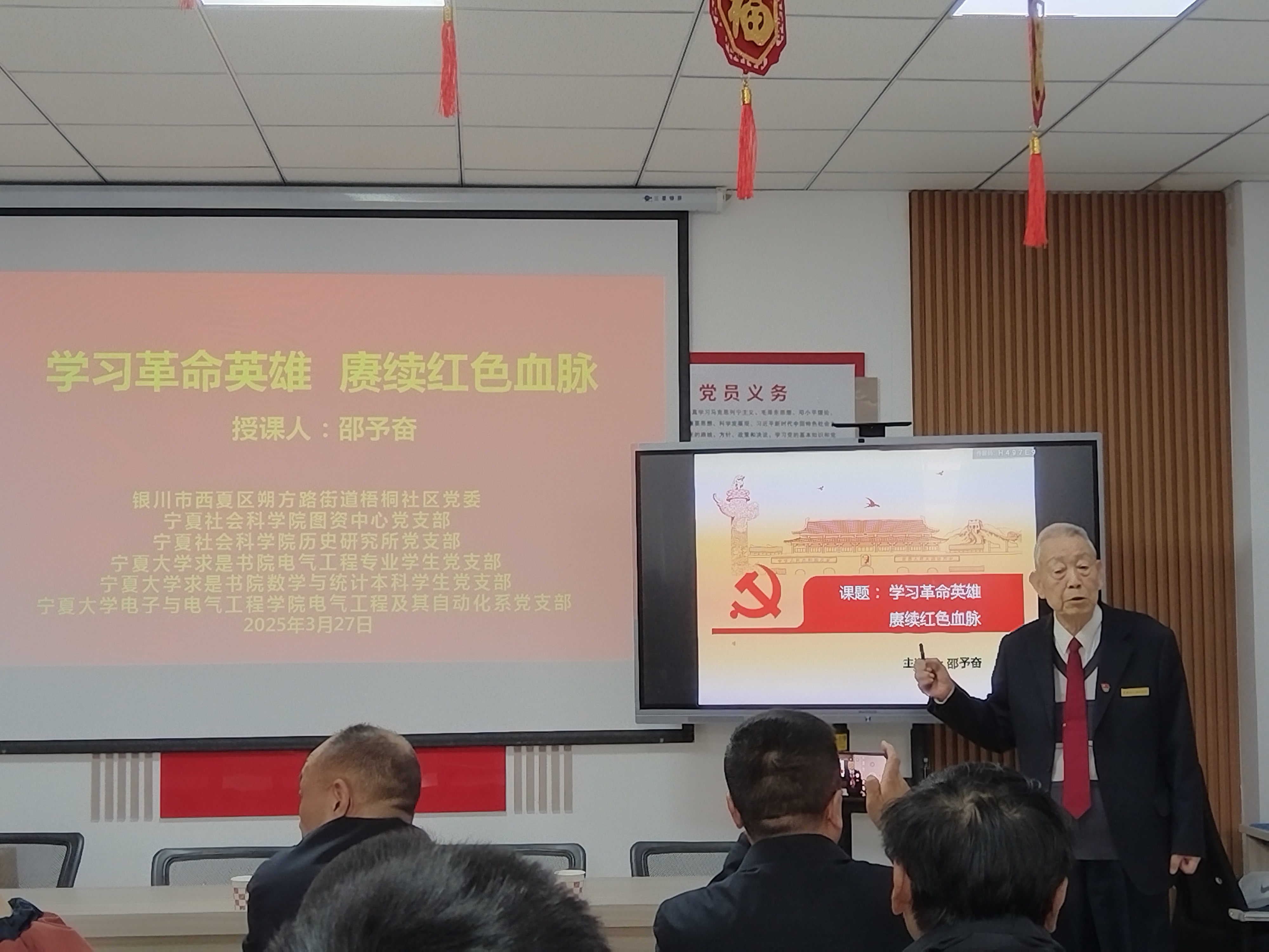 电气工程及其自动化系党支部联合求是书院电气工程专业本科学生党支部、数学与统计本科学生党支部走进西夏区梧桐社区,携手开展“聆听革命故事 追寻红色记忆”——缅怀革命先烈主题党日活动。