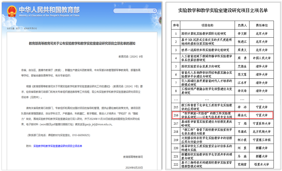 讯 蔺金元/文、图】近日,教育部高等教育司公布了2024年实验教学和教学实验室建设研究项目立项名单,在宁夏高校获批的5个项目中,必威体育