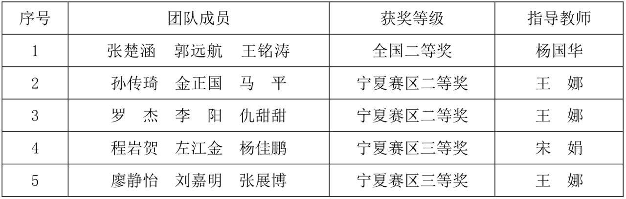 学院高度重视大学生数学建模竞赛,建立了“数学建模竞赛基地”,组建杨国华、宋娟、王娜等教师团队指导学生参加竞赛,并安排专项经费用于支持赛事的宣传、组织、培训等工作。参赛学生克服参赛条件困难、发扬专业优势努力奋斗,取得了显著的成效,促进了高水平赛事的发展,提高了学生的创新意识、运用数学方法和计算机技术解决实际问题的能力,凸显出学院创新创业教育的实践育人成效。