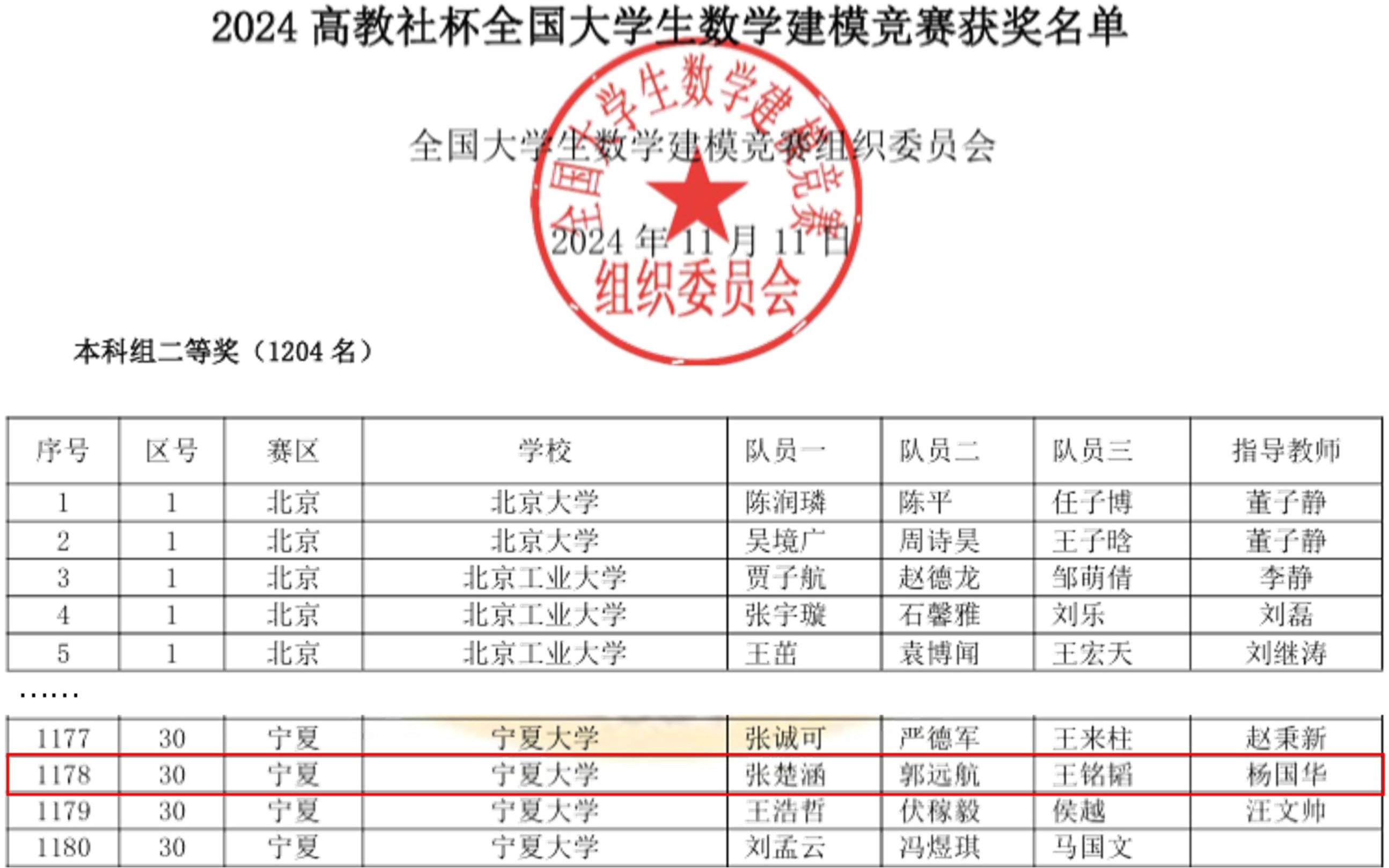 讯 杨国华/文、图】近日,由教育部高等教育司和中国工业与应用数学学会联合主办的2024年“高教社杯”全国大学生数学建模竞赛获奖名单公布,必威体育