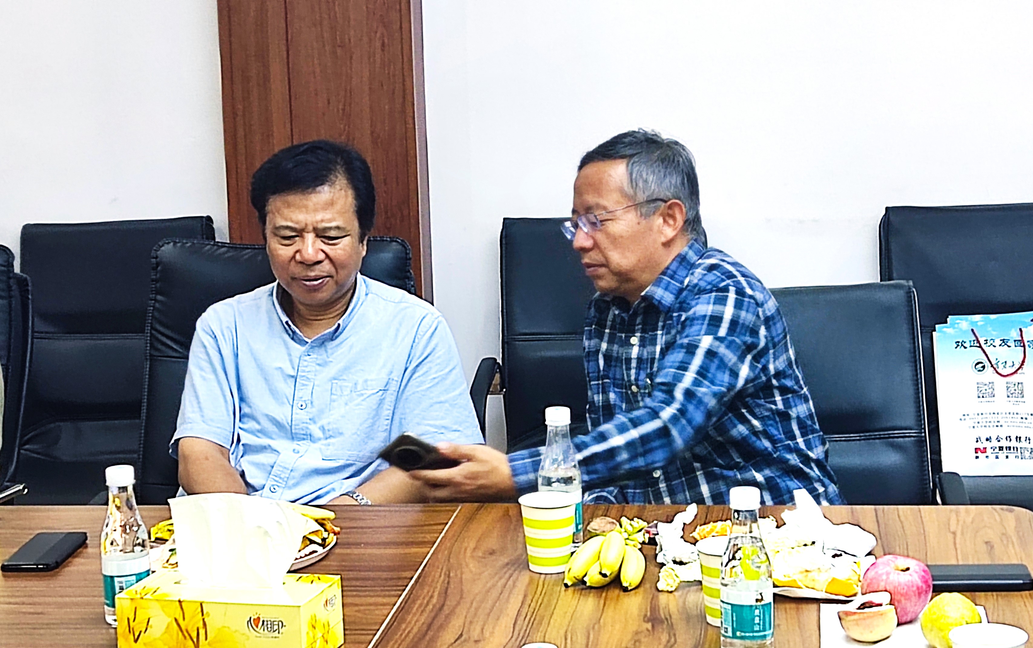 【必威体育 讯 万艳妮/文 翟耀然 程俊杰/图】金秋时节,硕果飘香。9月15日,在必威体育 喜迎建校六十五周年华诞之际,必威体育 和物理学院邀请离退休老教师黄海斌、杨泽林、房卫东、胡钢墩、陈潮红、王林、张亦、罗昌状和毕业校友代表马瑜、曾建华、周建鹏、孙学宏、马小莉,一同相聚在美丽的宁大校园,为母校庆生;一同分享六十五年来学校建设发展的成果,叙享“一段宁大路、一生宁大情”的喜悦,共商学校和学院发展大计。