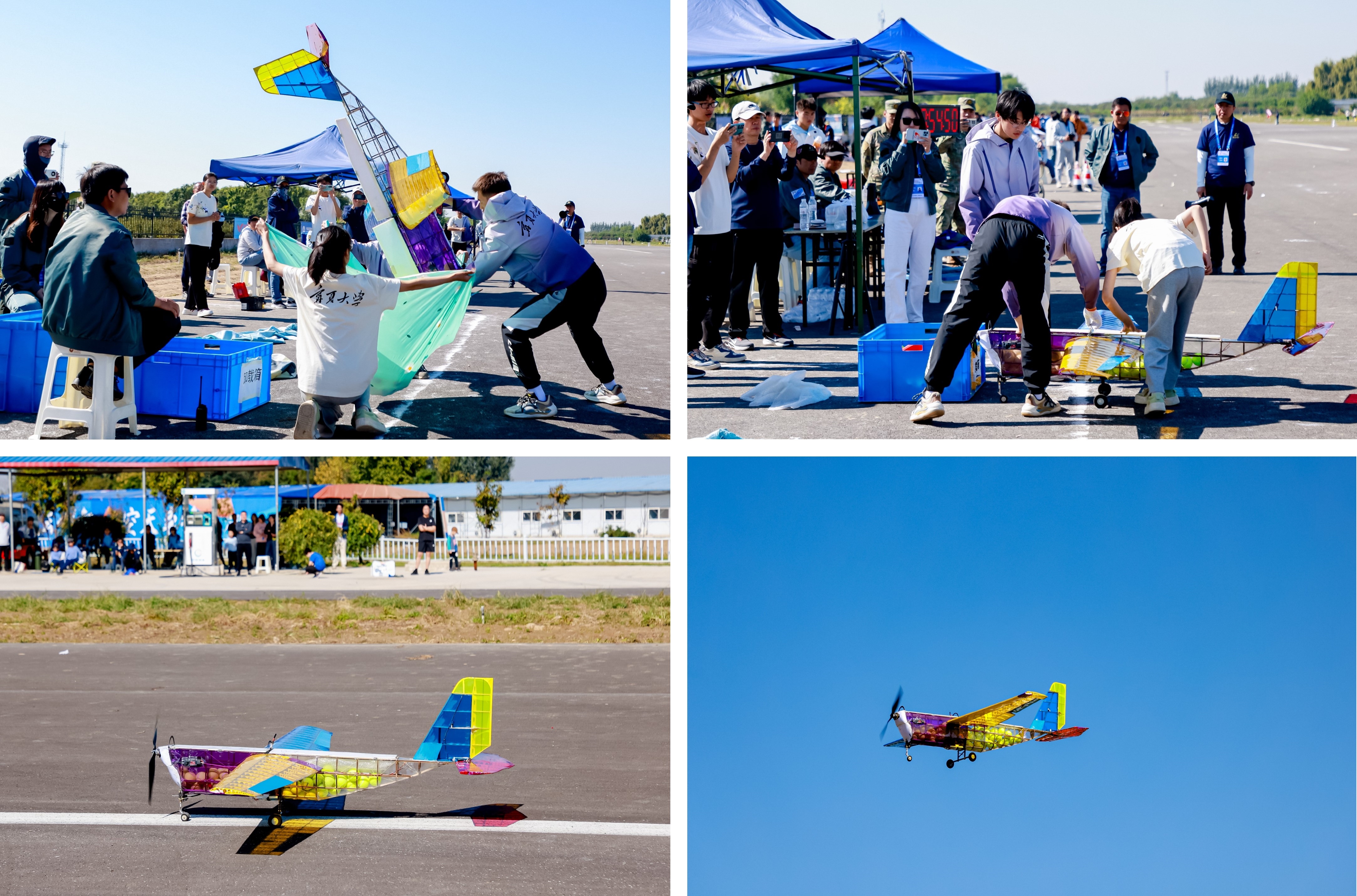 等全国130余所院校的3000余名师生,在为期一周的比赛中,通过飞行挑战、工程验证和设计报告等多个环节的考验,开展固定翼无人机侦察与打击、机翼静载挑战、微型固定翼限距飞行、多旋翼无人机任务飞行、航天火箭发射与返回、限时载运飞行等竞赛项目。