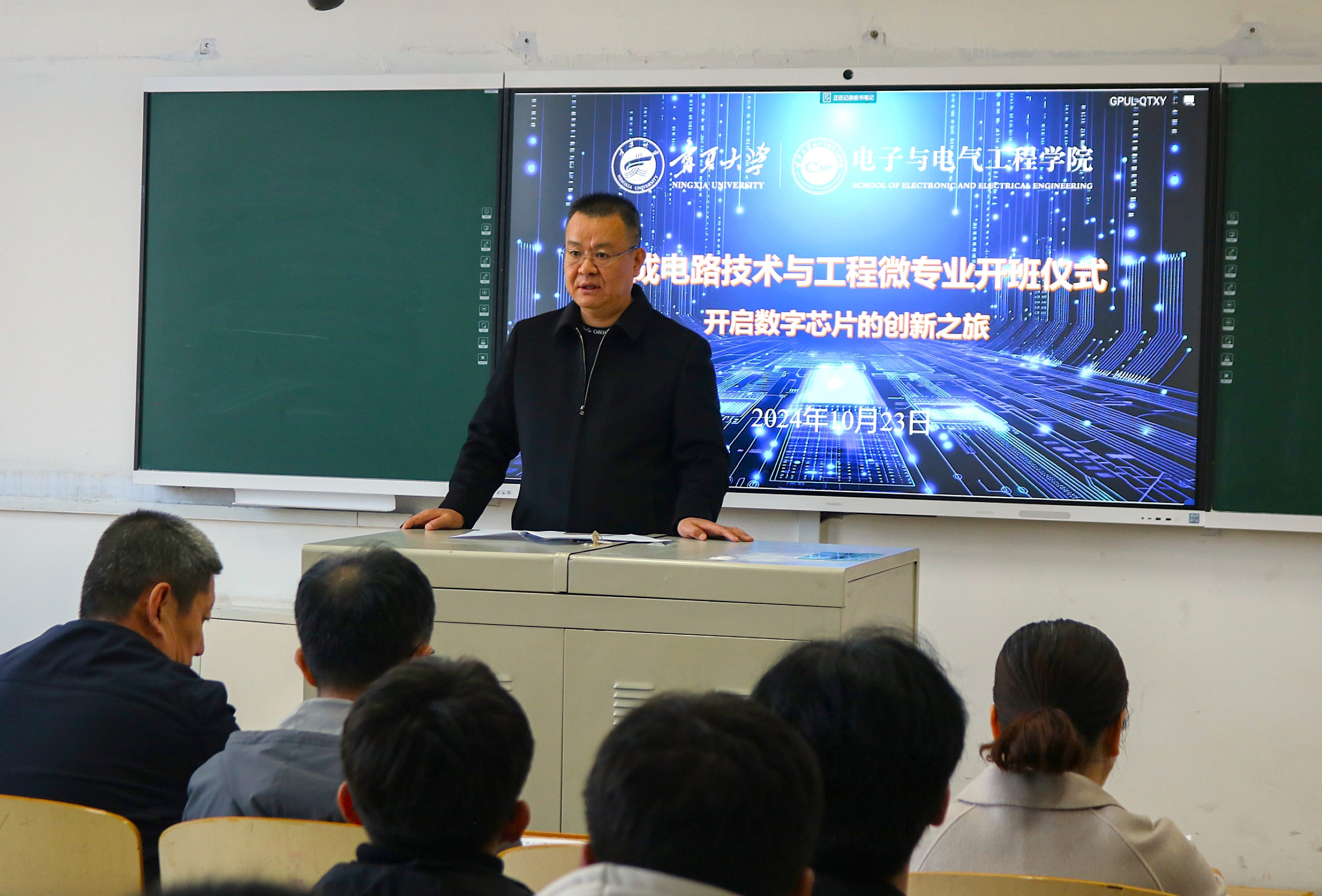 于怀远校区怀远1教举行首届集成电路技术与工程微专业开班仪式。开班仪式由学院院长孙学宏主持。