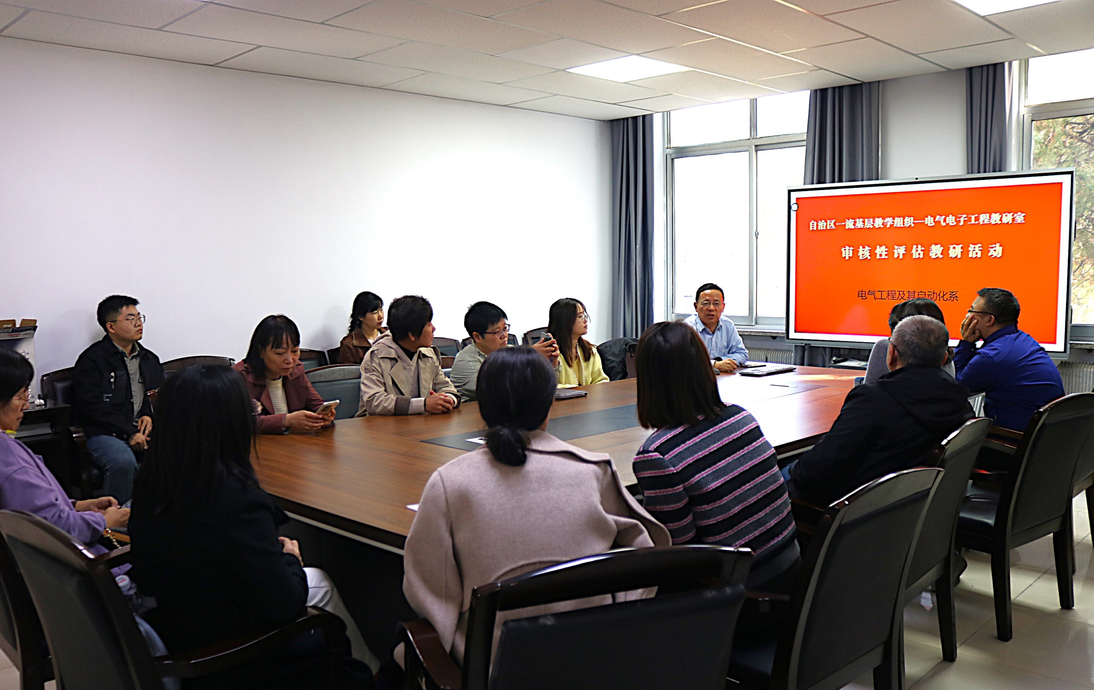 讯 杨国华/文 罗明/图】10月23日,电气电子工程自治区级一流教研室开展教研活动。活动由电气工程及其自动化系主任杨国华教授主持,教研室全体教师参加。