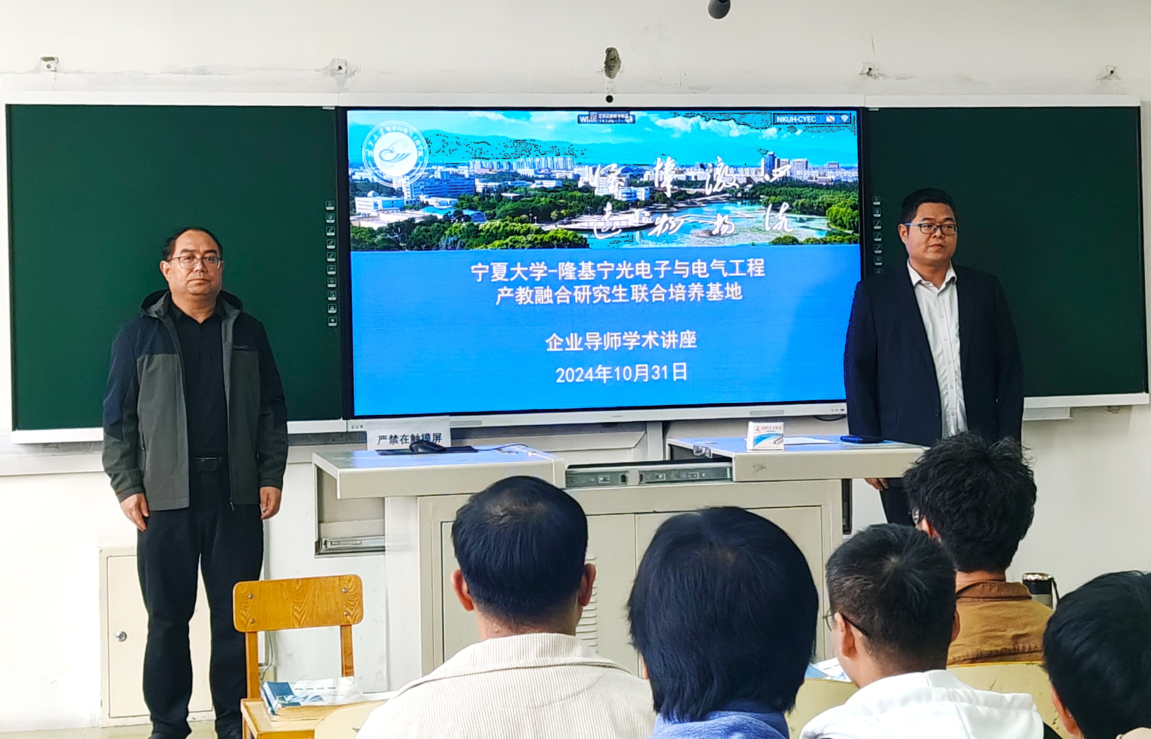 郭中华对隆基宁光参加讲座的二位企业专家导师表示热烈欢迎,介绍了学院与隆基宁光的校企合作,对产教融合研究生培养基地的建设规划进行了部署。