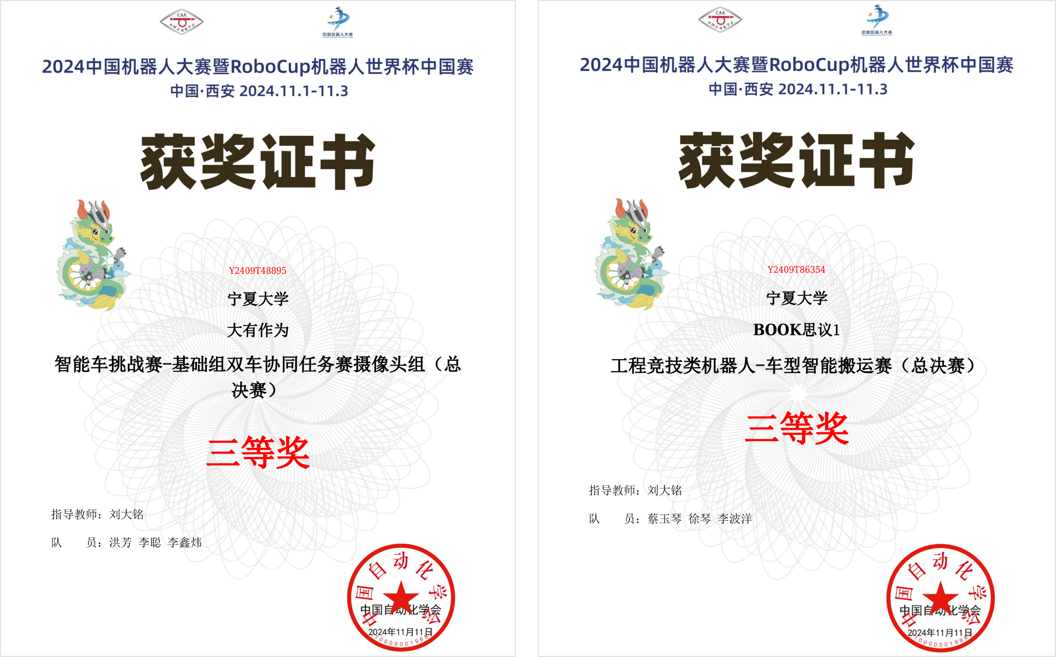 学子凭借机器人领域卓越的创新能力,以及运用信息技术解决实际问题的综合实践能力,在智能车挑战赛-基础组双车协同任务赛摄像头组和工程竞技类机器人-车型智能搬运两个赛项上分别获得三等奖。