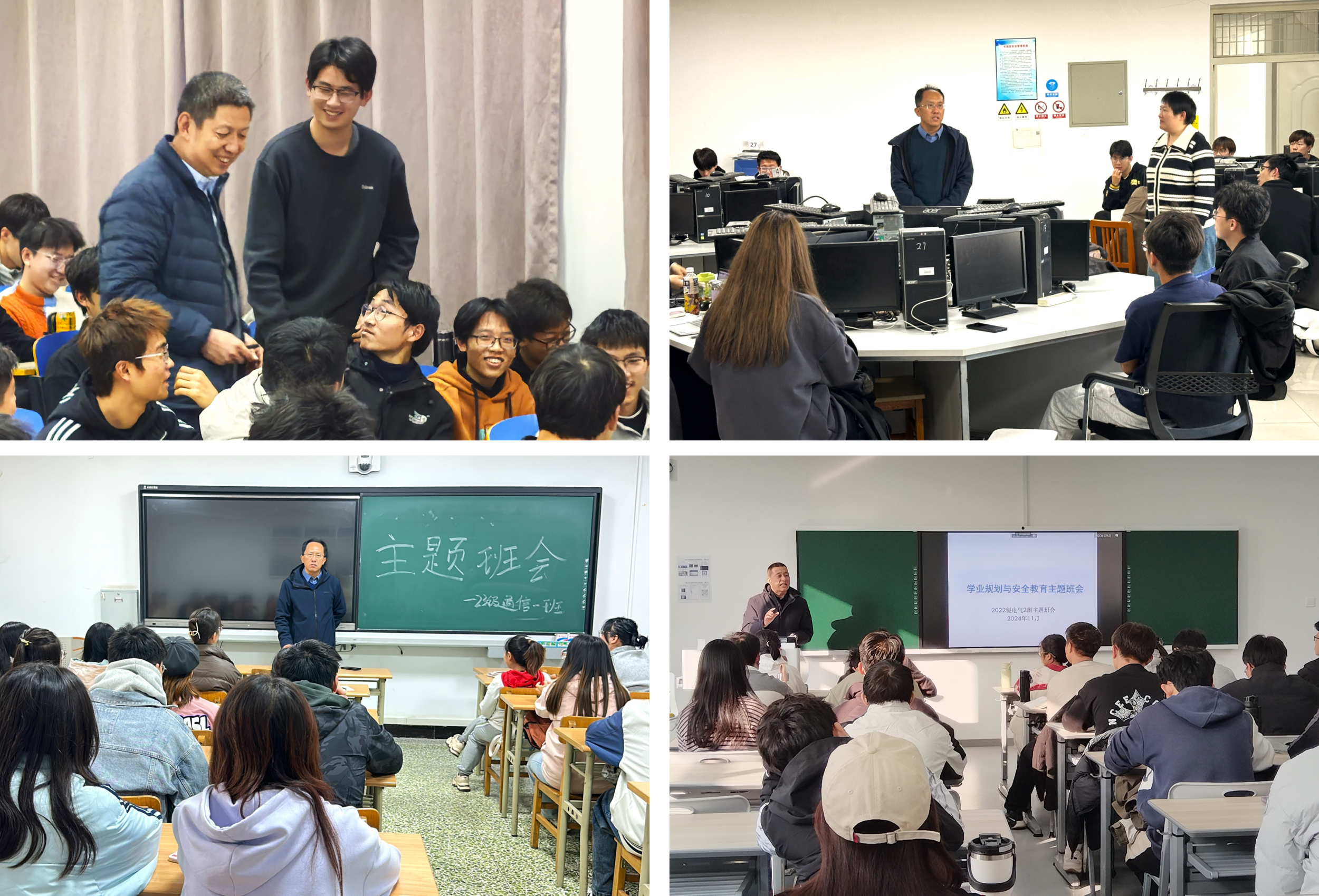 院领导走进大一新生班级,亲切询问同学们入校以来的学习生活情况,针对同学们反馈的学习问题进行释疑解惑,引导新同学们尽快熟悉校园生活,提升专业学习认知,帮助同学们进一步明确大学规划与学习目标。结合大学校园生活实际,引导同学们要增强责任意识,树立正确的世界观、人生观、价值观。同学们之间要相互欣赏、相互帮助、相互学习,在交往交流交融中增强团结,不断提升个人文明素养,努力营造拼搏进取向上的学习生活氛围。