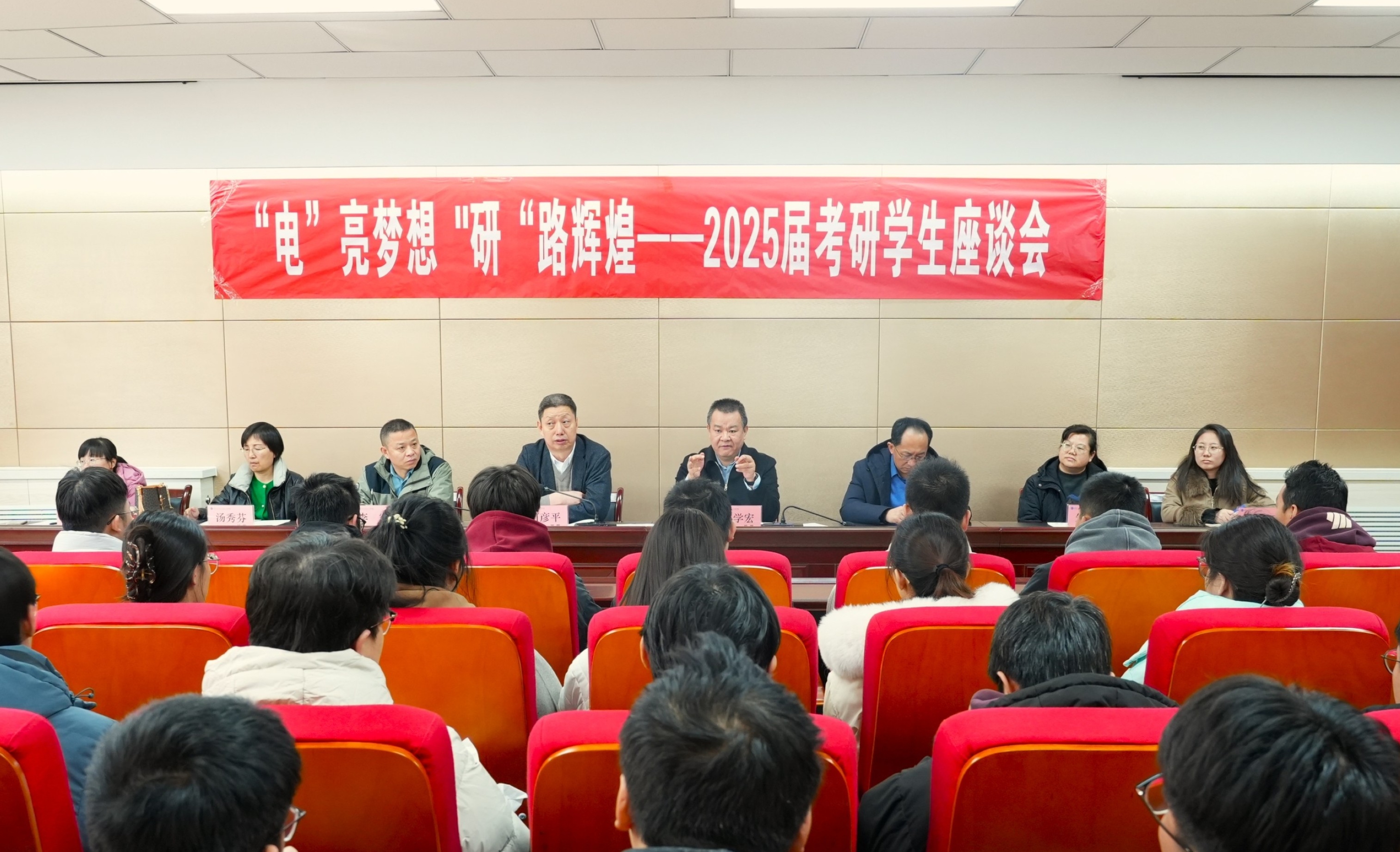 和求是书院于怀远校区德言楼报告厅举办“‘电’亮梦想 ‘研’路辉煌”2025届本科考研学生慰问座谈会。会议由学院党总支书记何彦平主持。