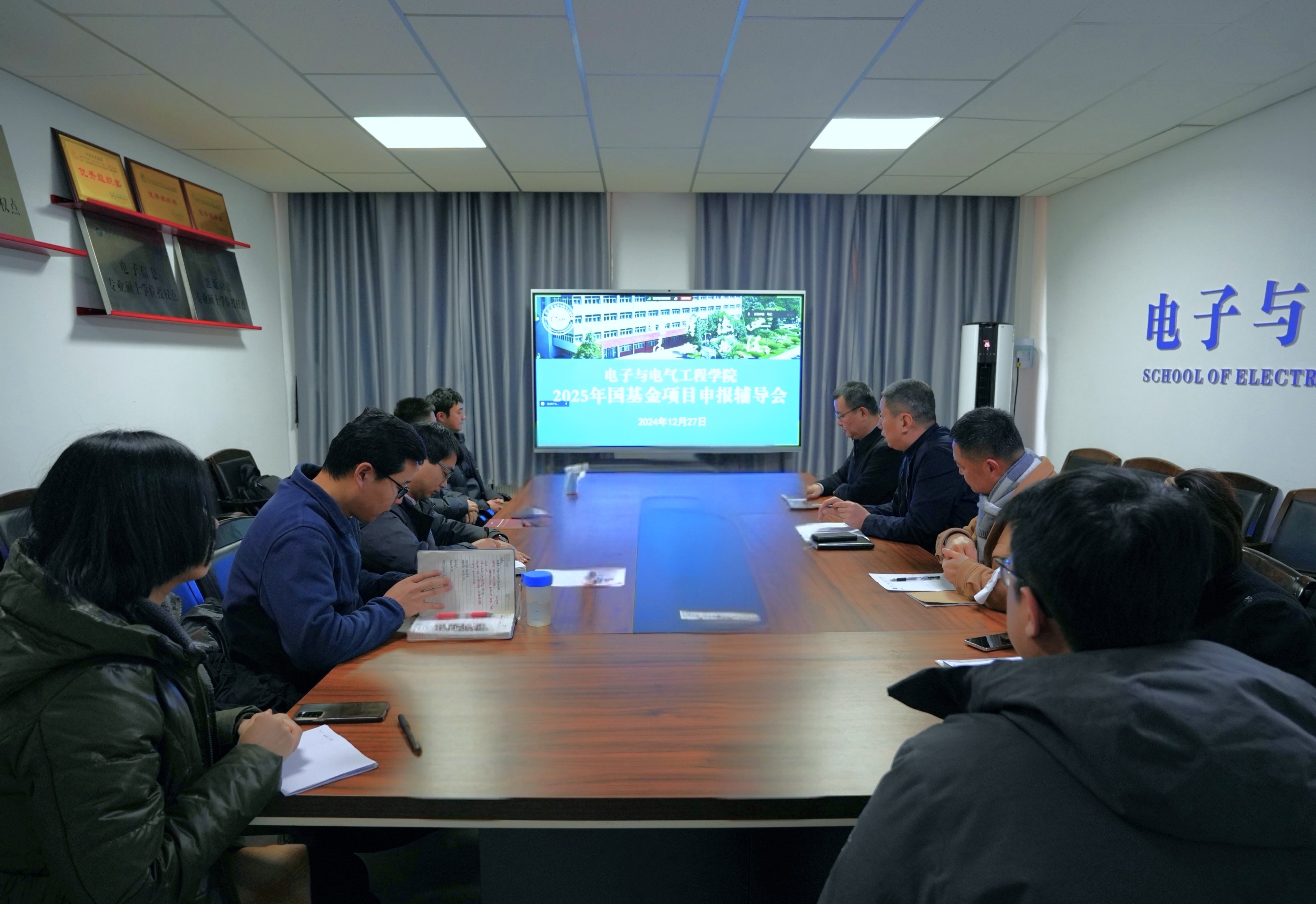 组织召开2025年国基金项目申报辅导交流会,学院2025年未限项教师、近期拟入职博士和2025年申请面试博士“线下+线上”同步参会。会议由学院党总支书记何彦平主持。
