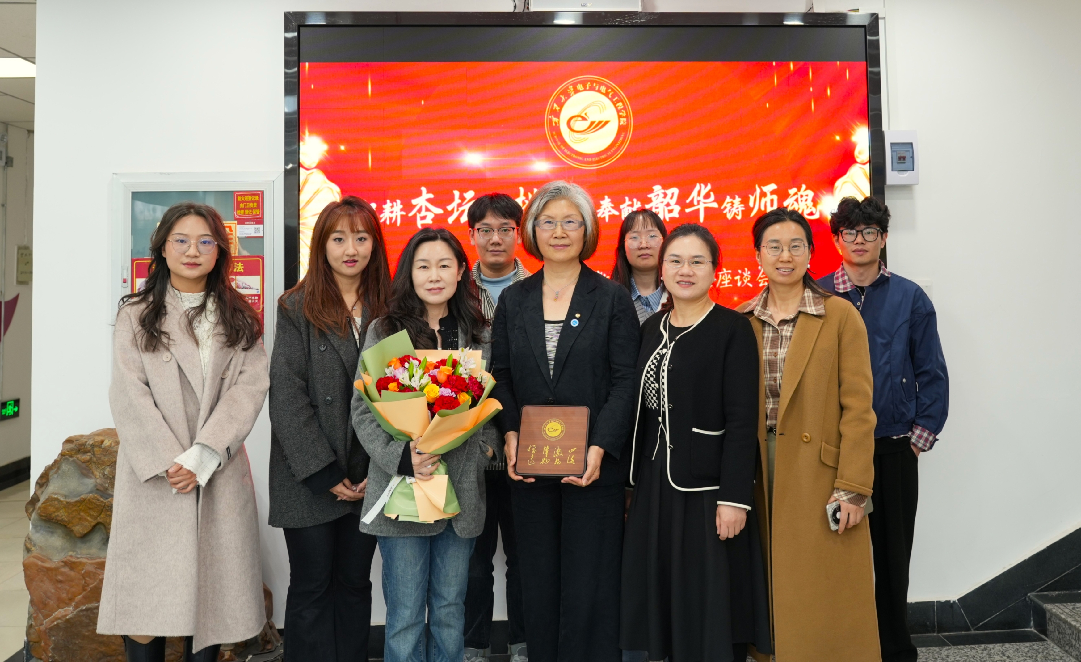 学生代表向汪西原教授和汤全武教授献上鲜花,感恩老师的辛勤教诲,祝福老师幸福健康。