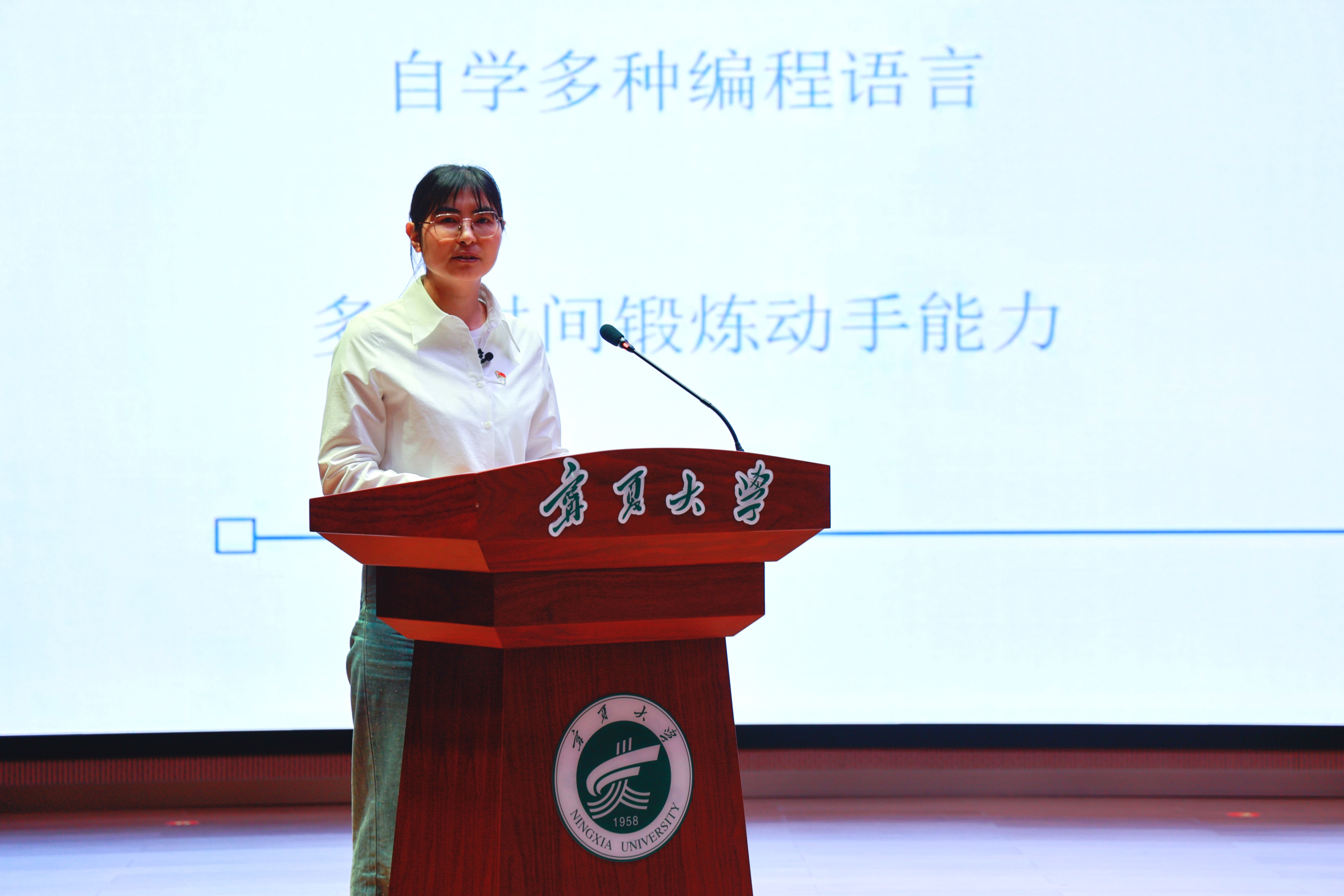 宣讲会现场,自治区“塞上英才”、电科院副总工程师吴旭涛以“侠科行”为题,为青年大学生分享三十余载深耕电力技术领域“匠心传承 电亮未来”的攻坚历程。作为自治区劳模创新工作室带头人,他带领团队从技术攻关到薪火相传,突破多项国际领先成果,填补行业空白,用坚持与热爱证明了“创新是永不褪色的担当”。他寄语青年大学生要练内功、行侠道、结同道,继续乘风破浪,做新时代“科研侠”。
