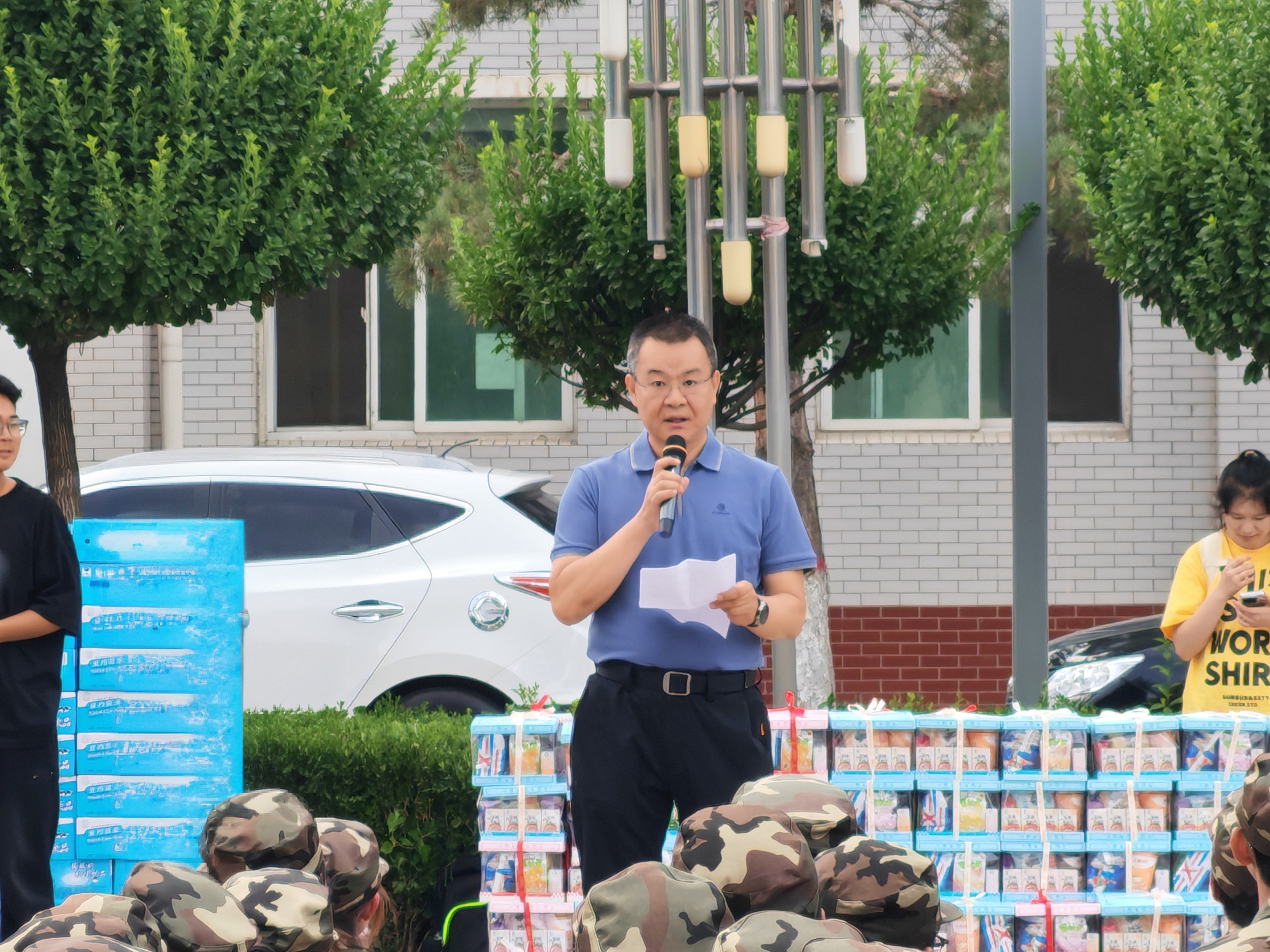 孙学宏代表学院向辛勤付出的带训教官和老师们表示衷心感谢,并向全体参训学生致以诚挚的问候。他强调,军事训练是大学生成长过程中的重要一环,不仅有助于强健体魄、锤炼意志,更是培养爱国主义精神与集体荣誉感的生动实践。他鼓励同学们珍惜这段特殊经历,以军人的标准严格要求自己,勇于挑战、不断超越,为大学生活写下坚定而精彩的第一笔。