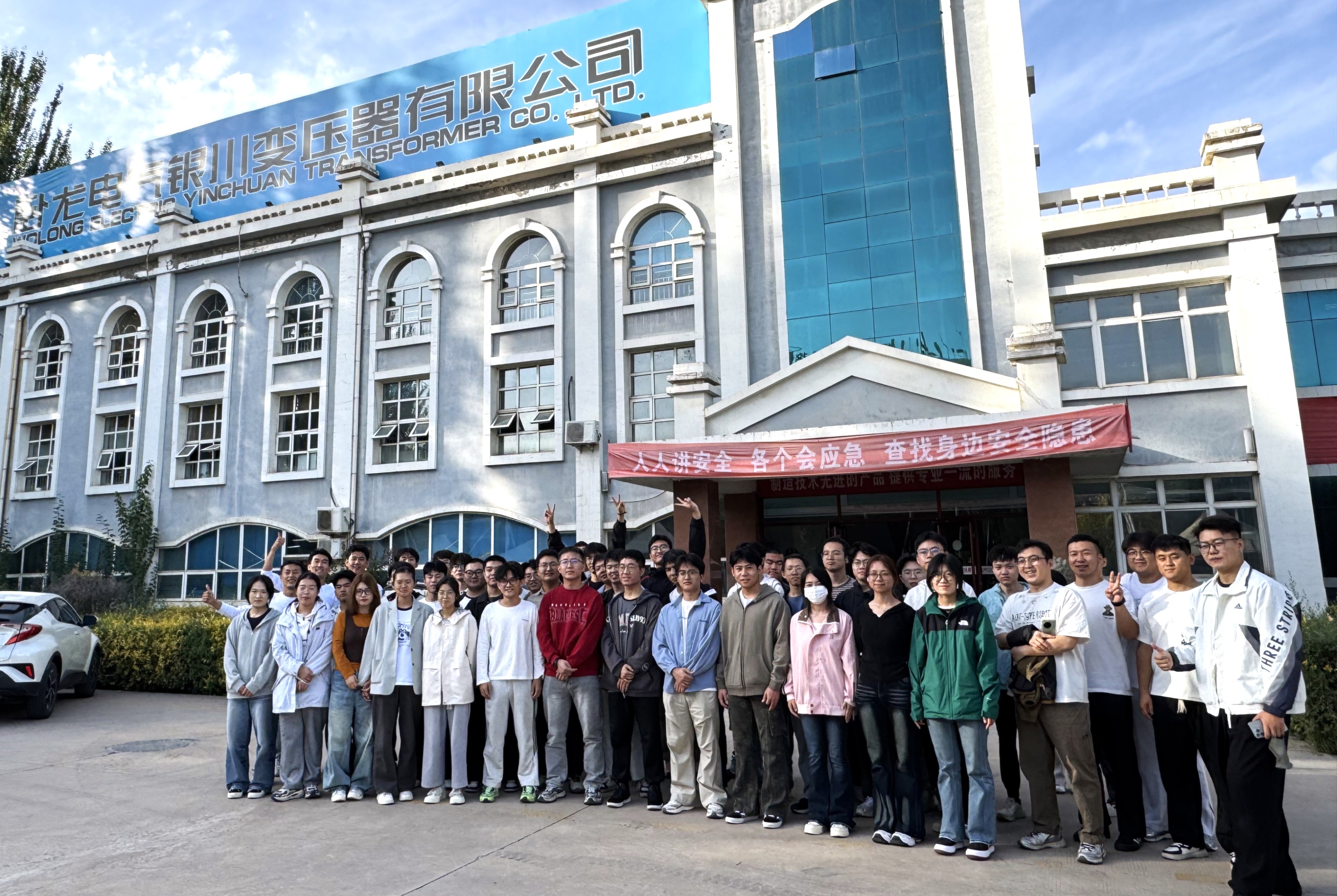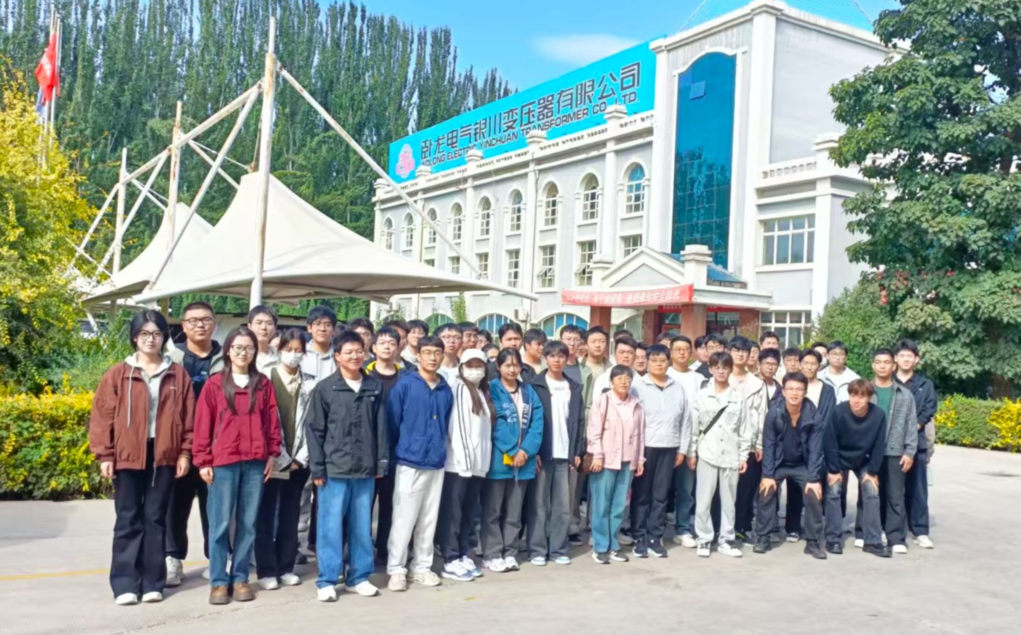 讯 杨国华/文、图】为深化产教融合,提升电气工程及其自动化专业本科生的工程实践能力与创新创业素养,9月28日,电气工程及其自动化系组织2022级电气工程及其自动化专业100余名学生,在专业教师的带领下,前往卧龙电气银川变压器有限公司开展实习活动。