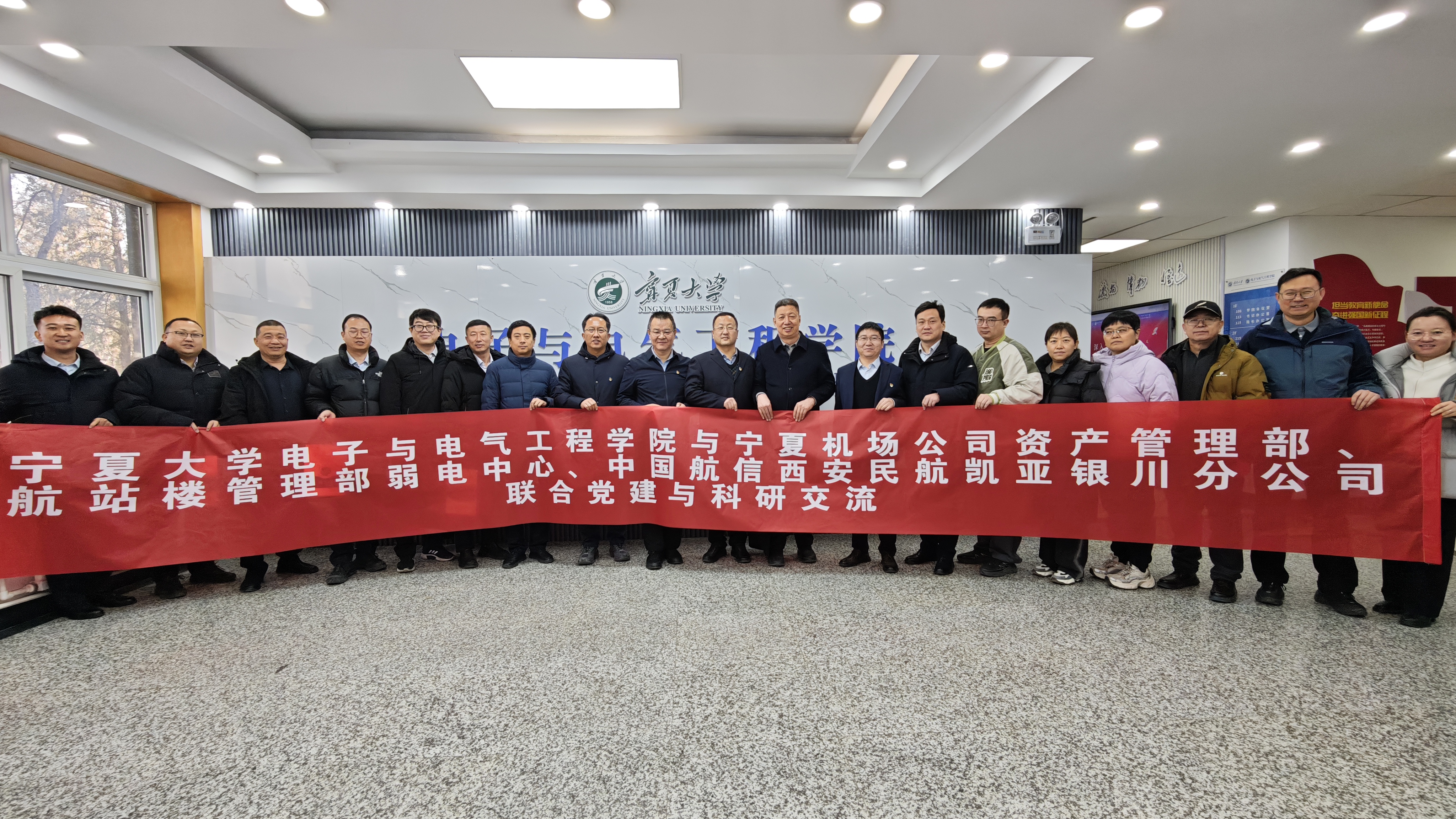 与宁夏机场公司资产管理部、航站楼管理部弱电中心、中国航信西安民航凯亚银川分公司共同举办“党建联建聚合力 数字赋能促创新”联合党建与科研交流活动。座谈会由学院副院长郭中华主持。