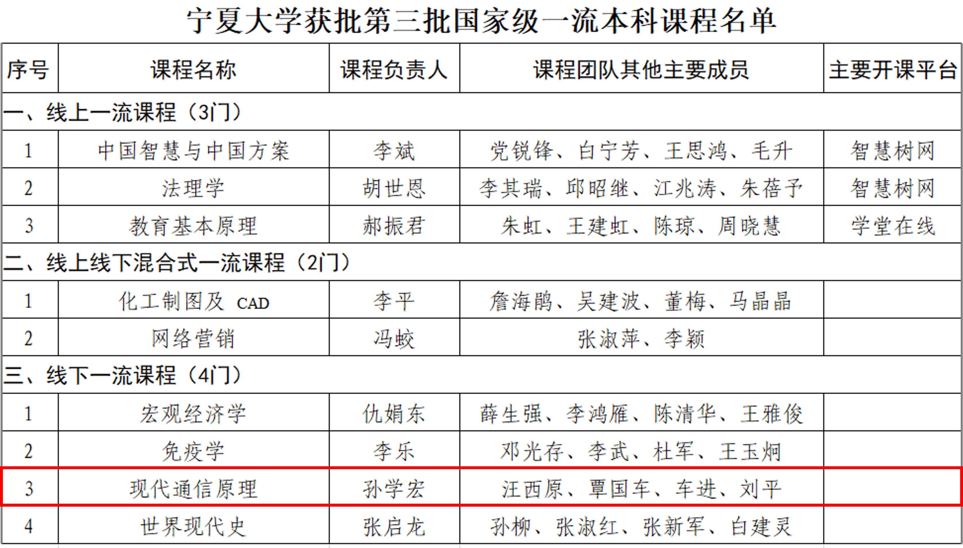 孙学宏教授团队主持的《现代通信原理》课程获批“线下一流课程”。