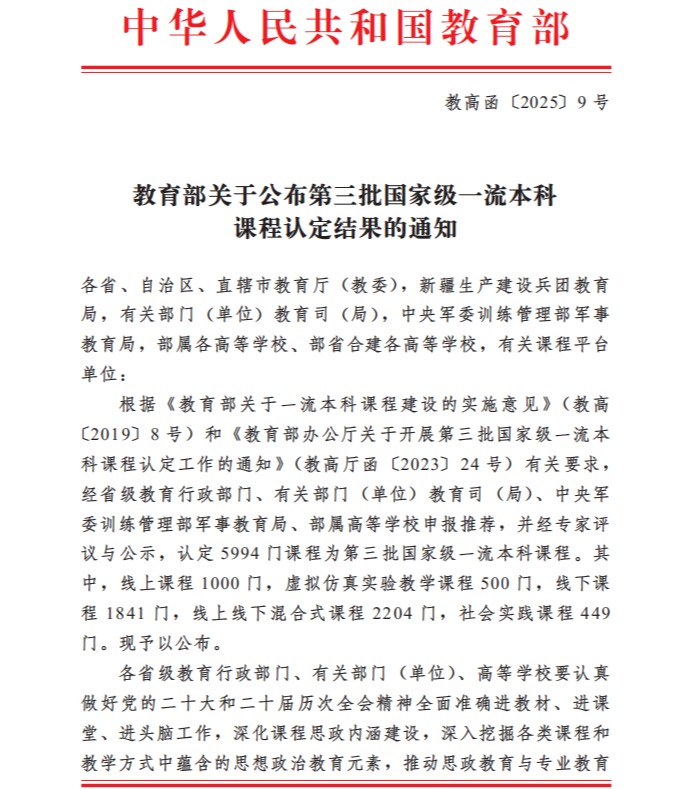 讯】近日,教育部公布第三批国家级一流本科课程认定结果。必威体育