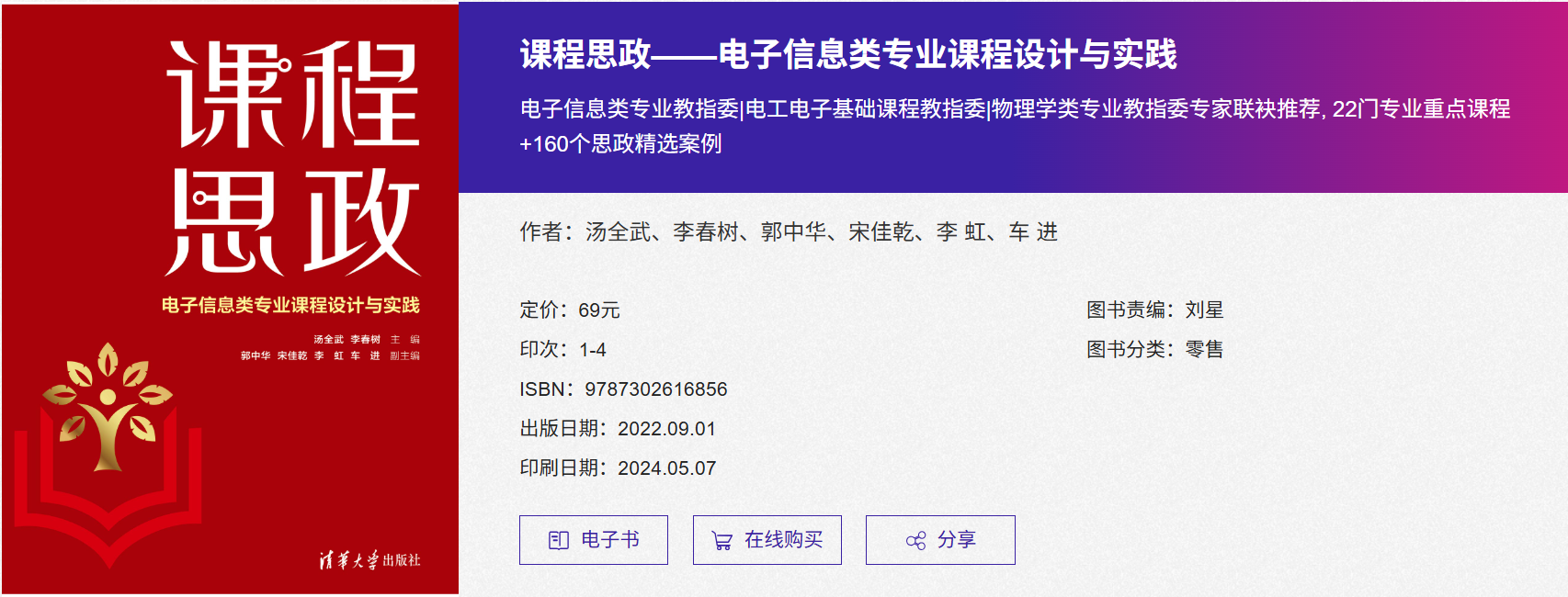 同期,从自治区哲学社会科学评奖领域再传佳讯。汤全武教授团队编著的《课程思政——电子信息类专业课程设计与实践》一书,荣获宁夏第十六届哲学社会科学优秀成果奖。该奖项是自治区哲学社会科学领域的权威奖项,旨在表彰对推动宁夏哲学社会科学繁荣发展具有重要价值的优秀研究成果。著作聚焦立德树人根本任务,系统探索了电子信息类专业课程与思政教育深度融合的理论路径与实践模式,提供了丰富的课程思政教学案例与解决方案,对强化专业课程的育人功能、培养德才兼备的创新型工程人才具有重要的理论价值与实践指导意义。此项获奖,标志着必威体育