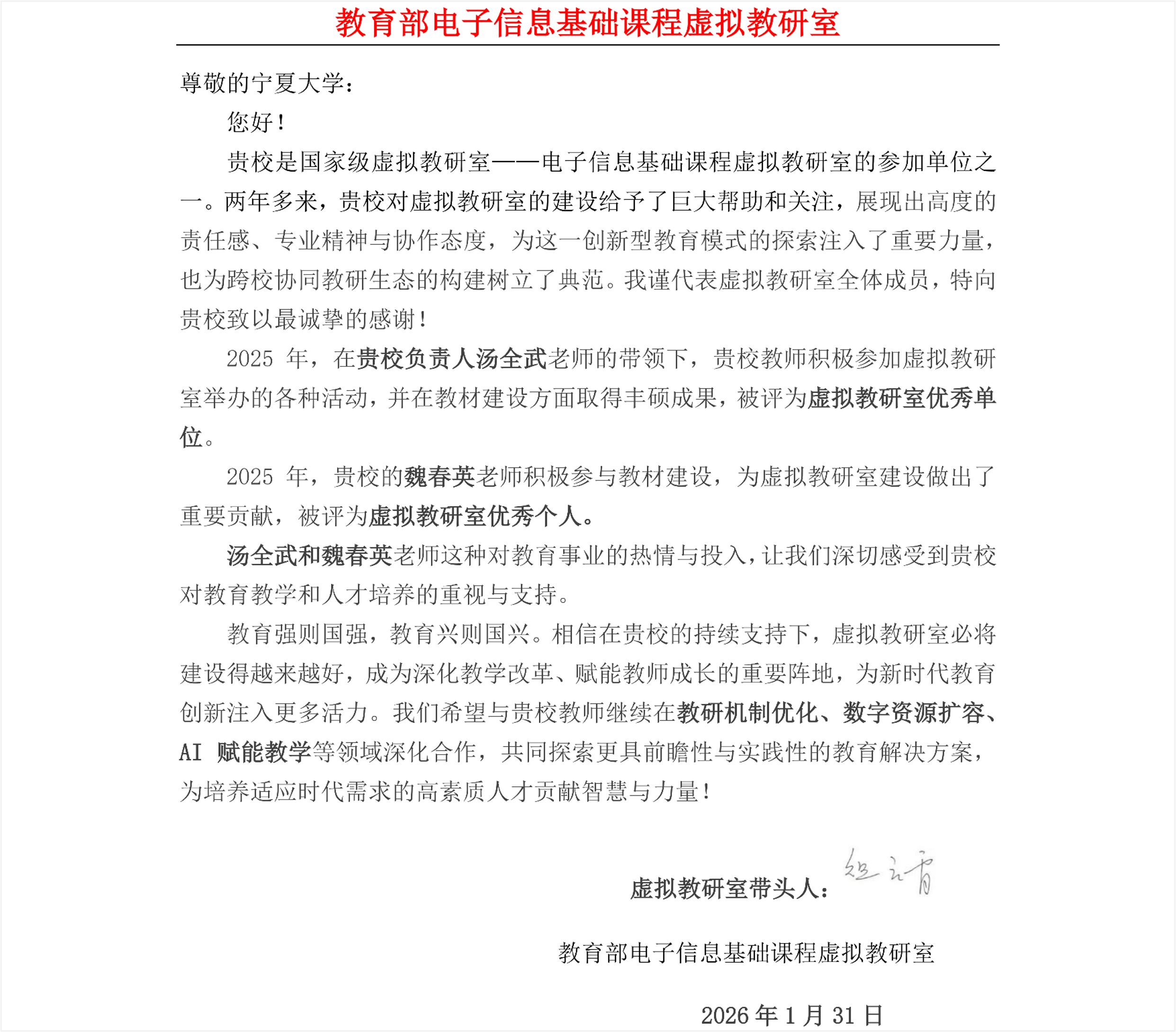 在虚拟教研室建设中的大力支持与重要贡献致以诚挚感谢。