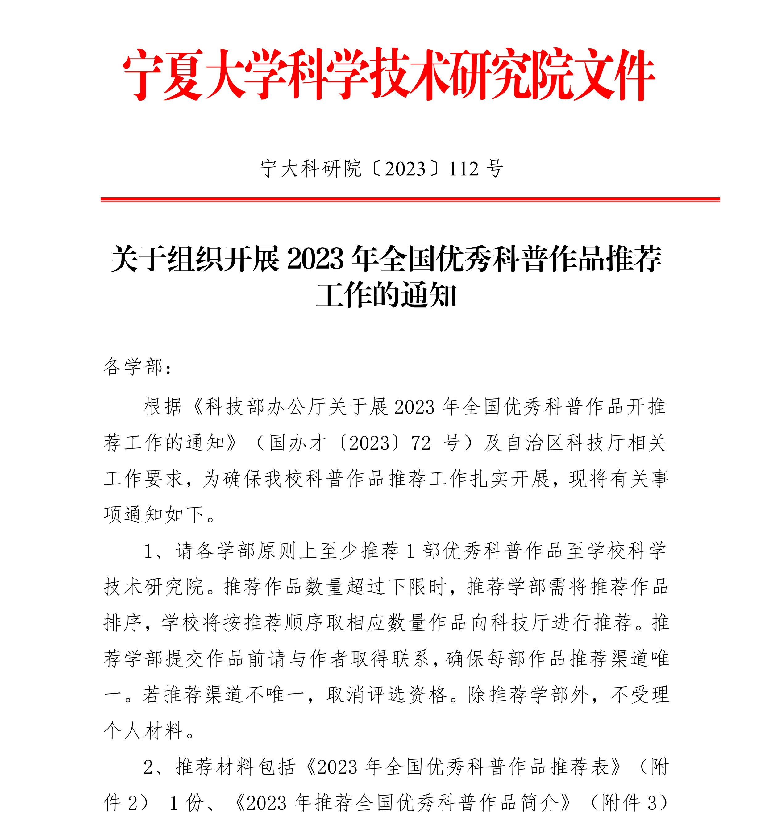 关于组织开展2023年全国优秀科普作品推荐工作的通知