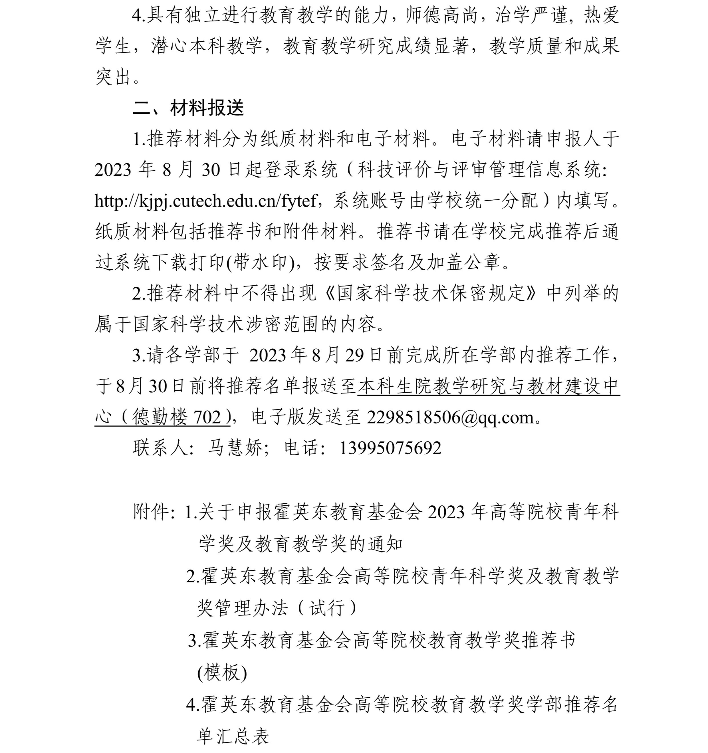附件1:关于申报霍英东教育基金会2023年高等院校青年科学奖及教育教学奖的通知.pdf