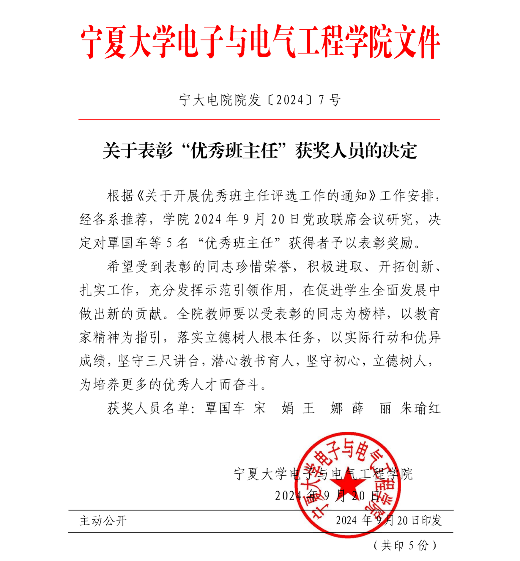 关于表彰“优秀班主任”获奖人员的决定