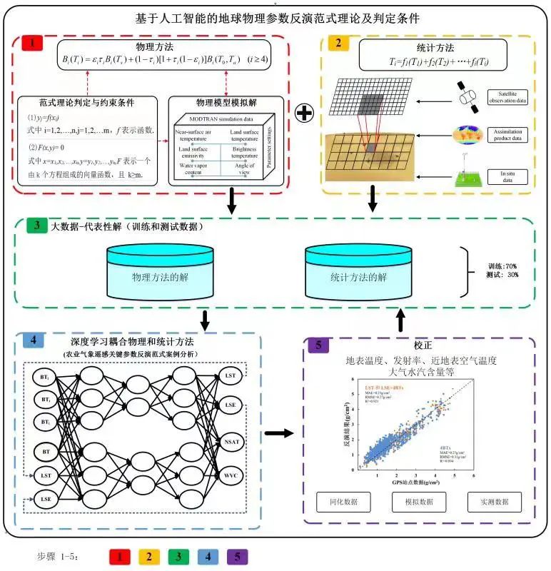 联合中国农业科学院等单位在人工智能地球物理参数反演方面做了很多的原创性研究工作,提出了基于人工智能地球物理参数反演范式理论。数博会专家组评审委员会对研究成果给予了高度肯定,认为该理论的提出在地球物理参数反演史上具有里程碑意义,突破了传统方法的局限,系统性地提高了参数反演精度。