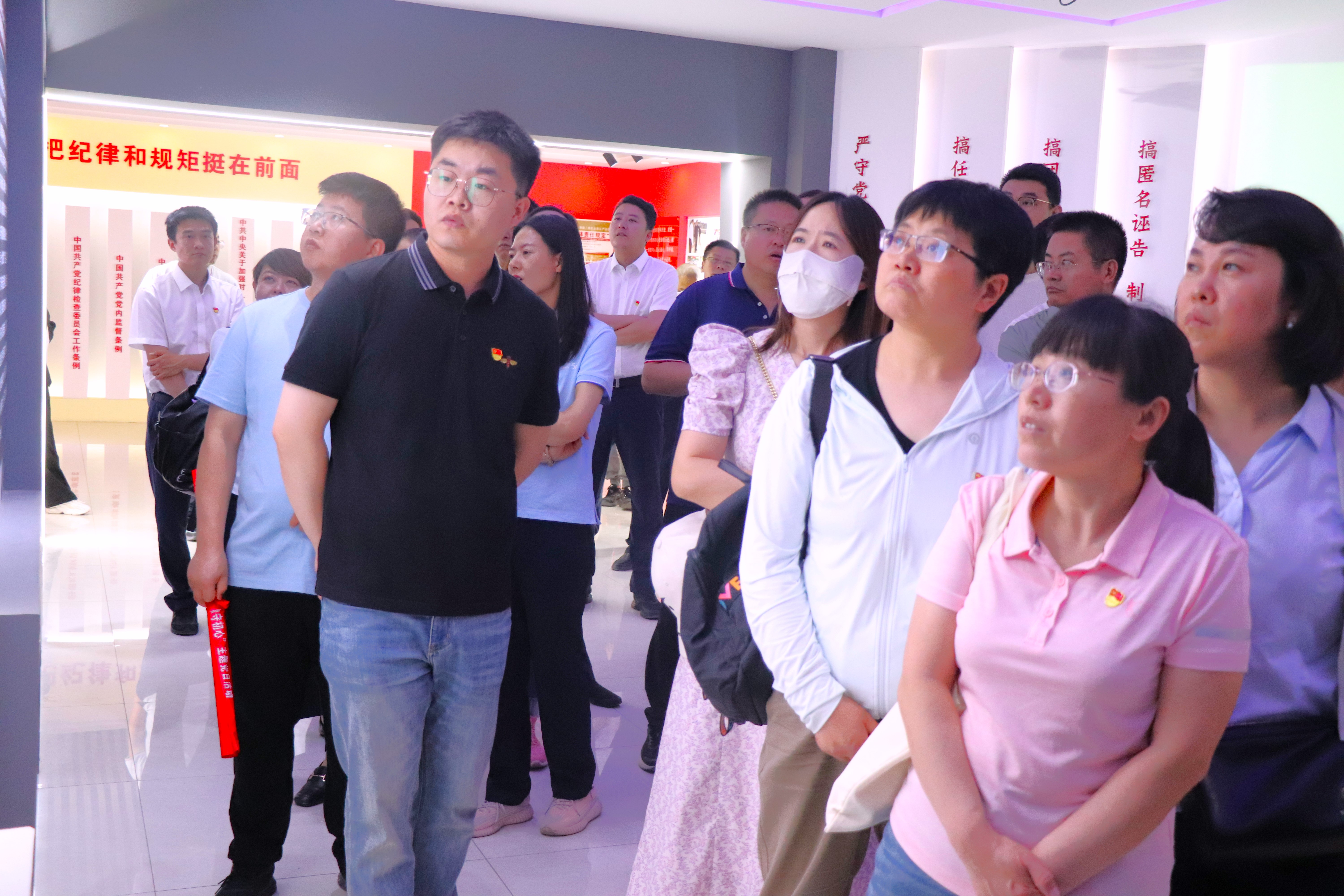 在警示教育基地,全体党员在讲解员的引领下,有序参观“领航”、“镜鉴”、“笃行”三个展厅的警示教育内容。大家通过图文展示、实物陈列和视频解说等形式,了解党风廉政建设和反腐败斗争的历史进程,直观了解近年来查处的典型腐败案例。